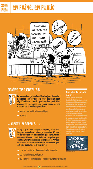 Thèmes : Apprentissage, Diversité des langues, Évolution des langues, Langue maternelle, Langues régionales, Origine des mots, Plurilinguisme, Pratiques langagières, Registres de langage …